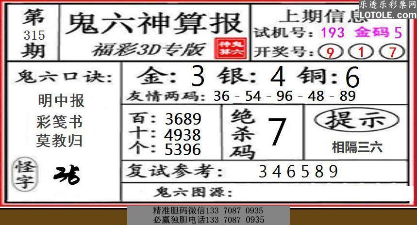 315鬼六神算乐透乐 第一时间发布