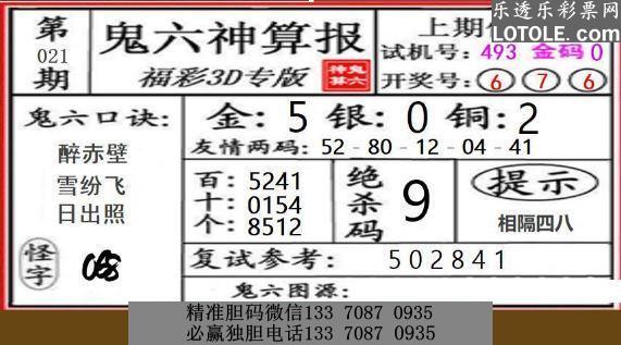 标题: 21鬼六神算乐透乐 第一时间发布