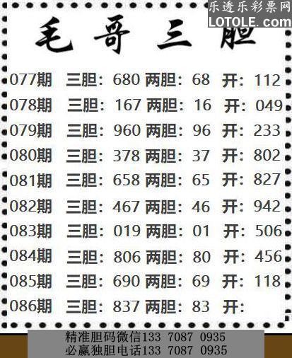 标题: 86毛哥三胆乐透乐 第一时间发布