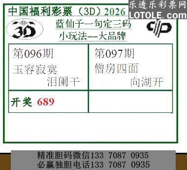 97蓝仙子一句定三码乐透乐 第一时间发布