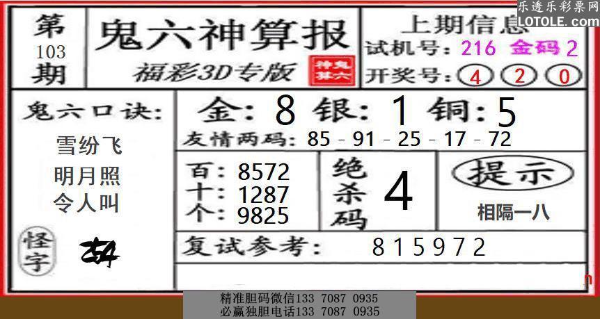 03鬼六神算乐透乐 第一时间发布