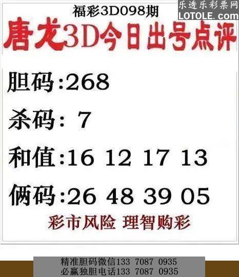标题: 98唐龙点评乐透乐 第一时间发布