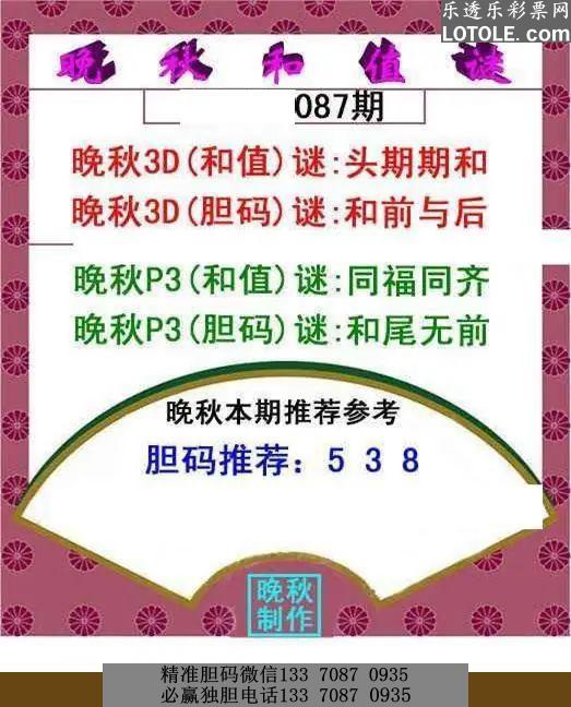 87晚秋和值谜乐透乐 第一时间发布