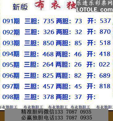 98新版布衣独胆王乐透乐 第一时间发布